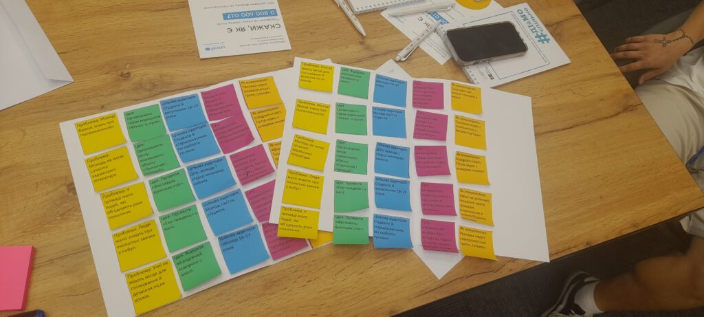 - фасилітаційні сесії, під час яких молодь навчалася визначати виклики та шукати ідеї для їх вирішення;