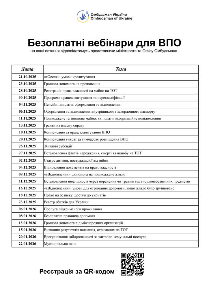 11 листопада 2025 року представники нашої установи взяли участь в онлайн вебінарі на тему: «Пошкоджене та знищене майно: як подати інформаційне повідомлення», організованому для внутрішньо переміщених осіб та осіб, які постраждали внаслідок збройної агресії проти України.